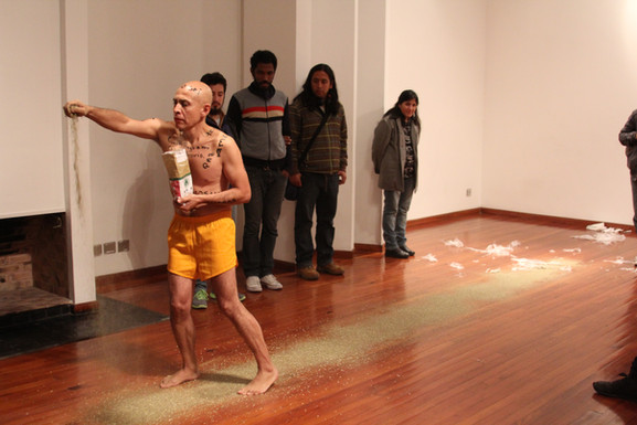 CORAJE es una performance que trata temas relacionados con el valor y el rechazo. Basado en las experiencias del artista y evocando la dualidad inherente en cada individuo, CORAJE evoca situaciones, posiciones, y relaciones psicogeográficas por medio de acciones que construyen una narrativa performativa experimental y multisensorial.